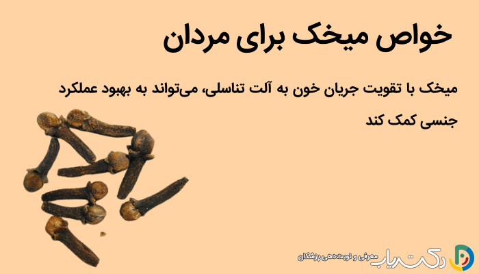 آقایان میتوانند دو گرم میخک را پودر کرده و با شیر تازه مخلوط کنند و این ترکیب را به مدت ده روز مصرف نمایند. این ترکیب به تقویت قوای جنسی مردان کمک کرده و میتواند نقش مؤثری در بهبود عملکرد جنسی آنها داشته باشد.