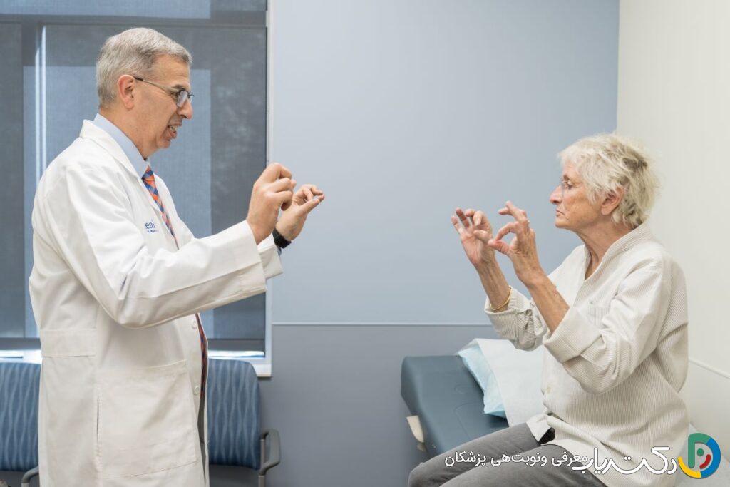 - حالات چهره و تکلم: کاهش پلک زدن یا چهره “بیحالت” و صدای آرام و یکنواخت از دیگر نشانههایی هستند که پزشک به آنها توجه میکند.
